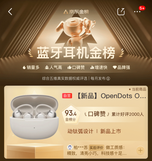 IDC数据显示,韶音在2024年中国开放式耳机市场继续领跑行业,占据销售额第一的位置。同时,欧睿最新数据报告显示,2024年韶音登顶全球运动耳机销量第一,实现两连冠。新品 OpenDots ONE 亦表现亮眼,跻身 2025 年京东 618 “蓝牙耳机金榜” 。