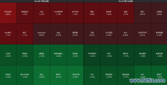 板块上来看,AI应用方向展开反弹,银行、电力、谷子经济等板块表现活跃;房地产板块大幅下挫,餐饮旅游、汽车、医药板块跌幅居前。