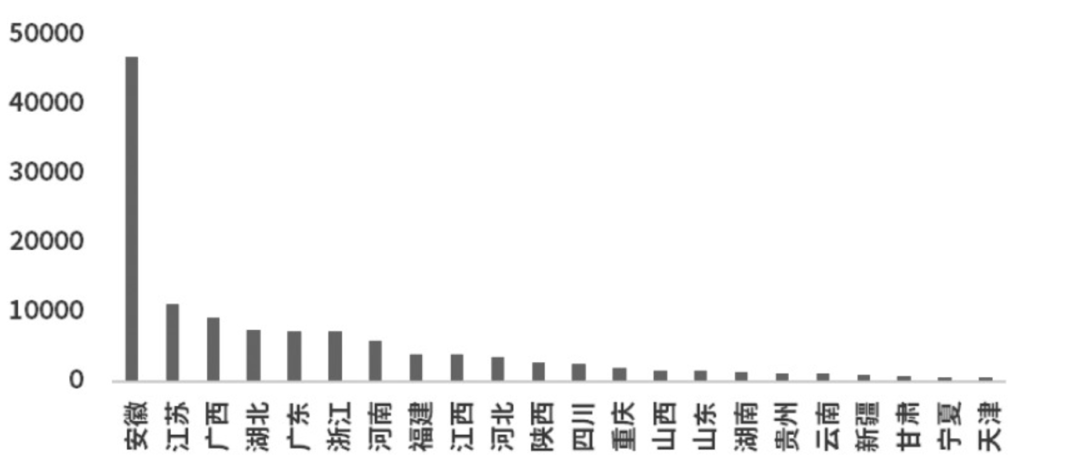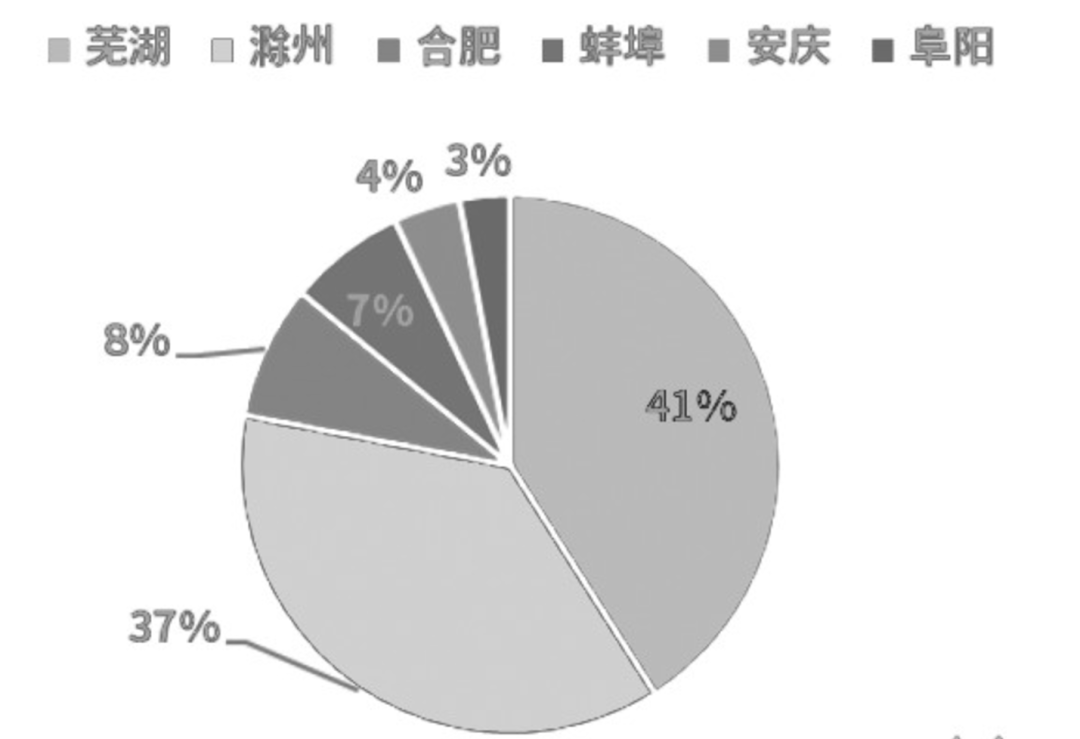 图为安徽光伏玻璃产能分布情况